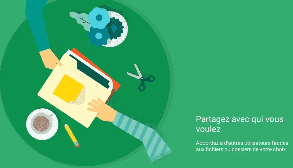 J’ai bien un compte google drive, la personne avec qui je partage mes fichiers également. Cependant, lors du partage des fichiers, je n’ai que 2 options qui s’offrent à moi : L’édition (icône d’un crayon) ou la consultation (icône d’un oeil). Par conséquent, la personne peut consulter et modifier les fichiers mais elle ne peut pas en déposer et en partager avec moi dans le même dossier.