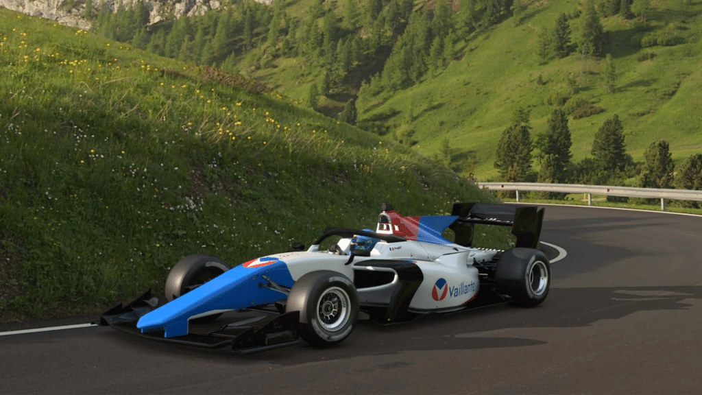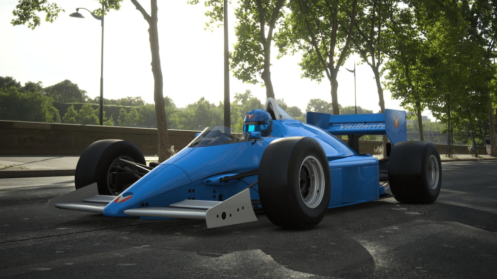 On commence par le sommet du sport automobile ! J’ai appliqué les couleurs traditionnelles de l’écurie sur la Super Formula du jeu. Je suis assez content du résultat qui est basé sur le design de la Formule 2 de l’album « Michel Vaillant – saison 2 tome 7 – Macao ».