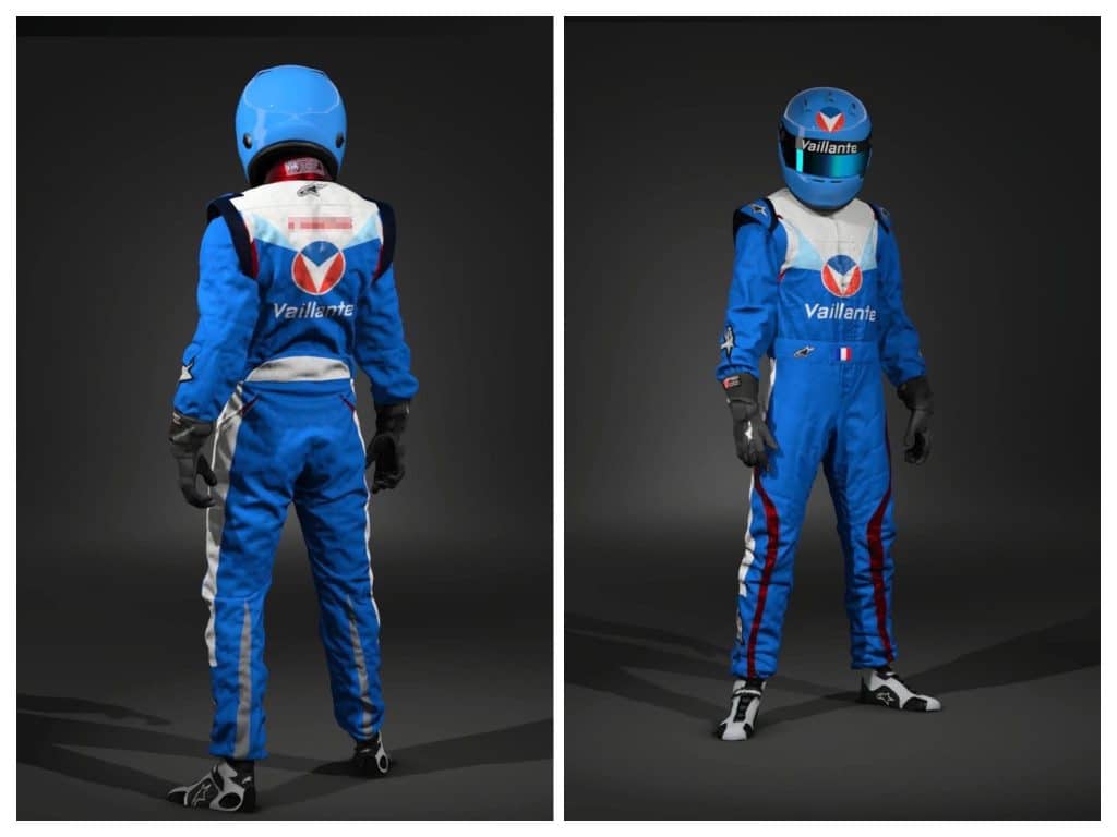 Conduire une Vaillante, c’est bien. Être habillé comme un vrai membre de la team, c’est mieux ! Grâce à l’éditeur d’équipement, j’ai réussi a recréer (presque) à l’identique le casque iconique de Michel (blanc avec le liseré rouge et bleu) ainsi que la combinaison officielle.