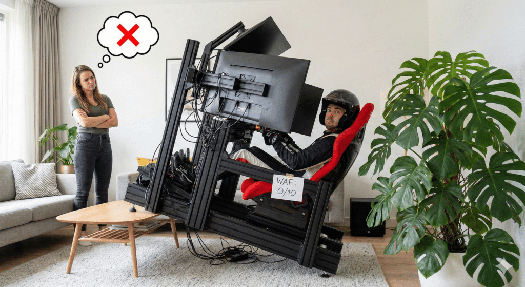 À moins d’avoir la chance de posséder une « Geek Room » dédiée, intégrer un simulateur pro dans un espace de vie commun relève de l’exploit esthétique. Nos moitiés ont d’ailleurs souvent bien raison de défendre l’harmonie du foyer ! 😄