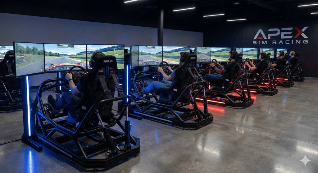 Se glisser dans un cockpit dynamique sur vérins, avec un écran incurvé géant et un volant à retour de force qui menace de vous briser les poignets à chaque vibreur, c’est une expérience sensorielle bluffante.