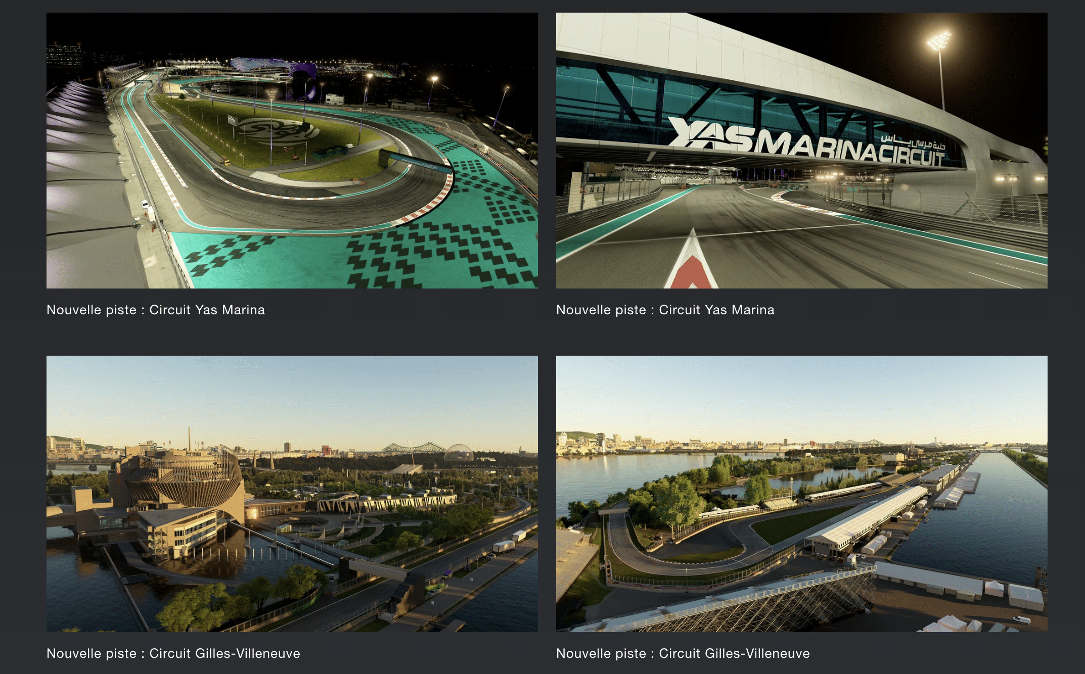 C’est l’autre grande nouvelle : l’ajout de deux tracés réels. Nous pouvons désormais limer le bitume sur le Circuit Gilles-Villeneuve à Montréal, célèbre pour son « Mur des Champions », et sur le complexe ultra-moderne de Yas Marina à Abu Dhabi. Ces circuits apportent une diversité bienvenue dans les championnats en ligne et les épreuves de carrière.