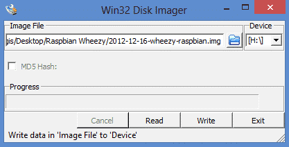 Tout d’abord Extrayez Win32 Disk Imager ainsi que l’ISO de Raspbian. Ensuite, lancez le logiciel en cliquant sur l’exécutable “Win32DiskImager”.