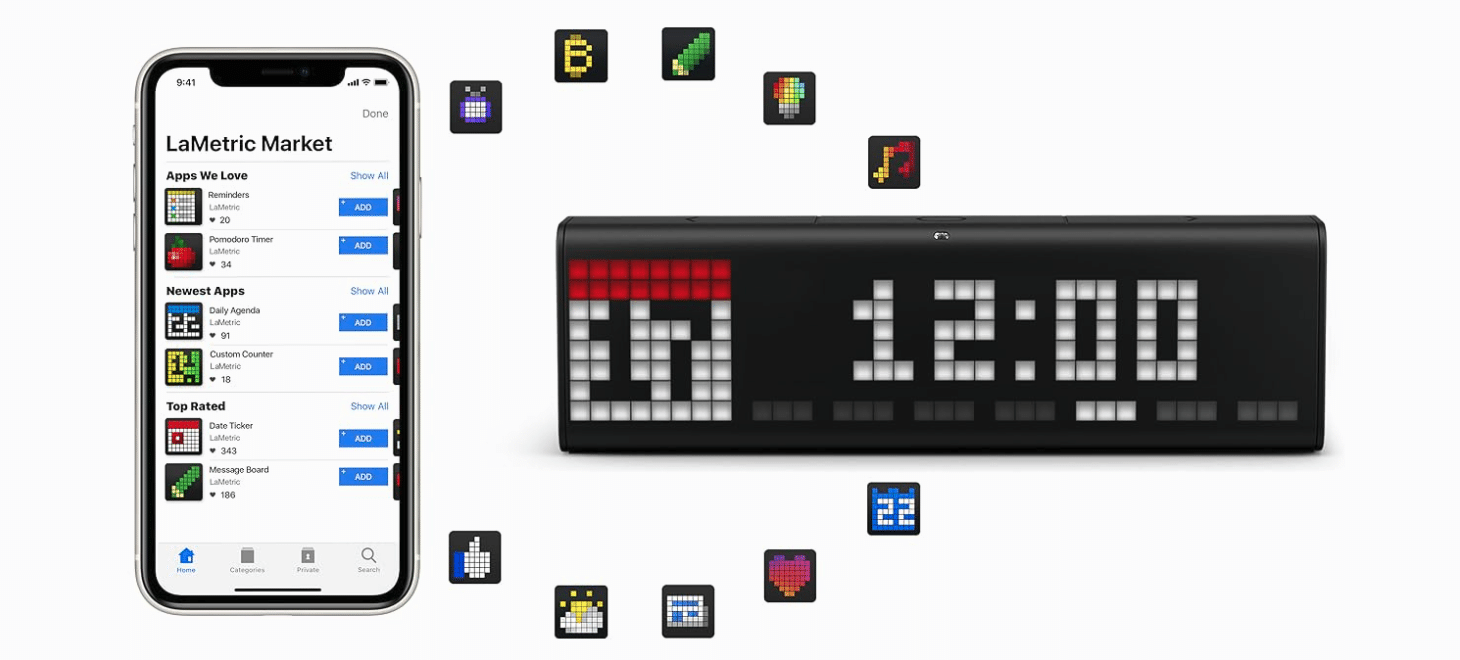 C’est la force du système : le LaMetric Market. Des développeurs indépendants créent des tonnes d’applications (Bourse, Crypto, Météo détaillée, Trafic routier…).