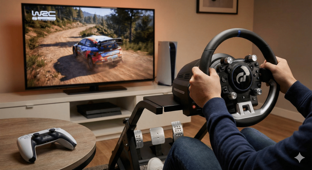 Vous connaissez cette sensation ? Vous êtes dans votre canapé, manette en main, à enchaîner les tours sur Gran Turismo 7 ou à déraper dans la boue sur WRC. C’est amusant, c’est certain. Mais au fond de vous, vous sentez qu’il manque quelque chose. Une connexion réelle avec la route.