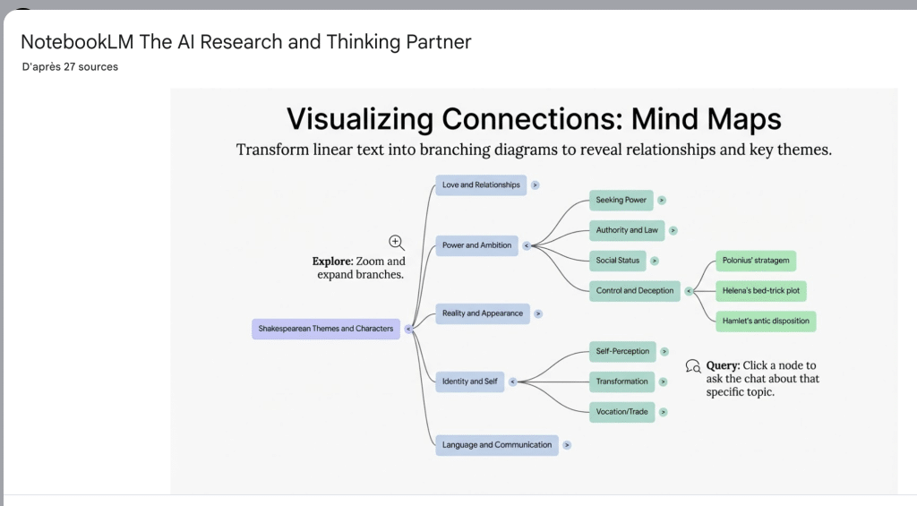 Pour ceux qui ont une mémoire visuelle ou qui ont besoin de tester leurs connaissances, NotebookLM génère désormais automatiquement :