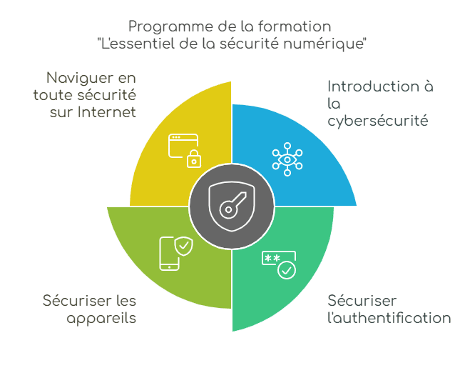 Cette formation a été conçue pour vous donner les clés indispensables pour naviguer en toute sécurité dans le monde numérique. Elle notamment adapté à un public de débutant ou intermédiaire en informatique (personnes souhaitant améliorer ses compétences/connaissances en terme de cybersécurité).